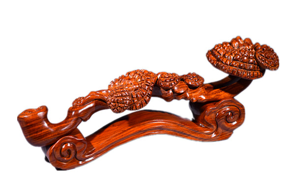 靈芝本身古樸典雅、古色古香、漆光閃亮。菌蓋條棱放射,波狀環(huán)紋交錯(cuò),輝映成趣,令人遐想。生長發(fā)育完整的靈芝便是件天然藝術(shù)品! ∧芄で山车窨碳庸っ阑瑵u漸變成“靈芝如意”。這類高雅的物品成 為了宮廷名門饋贈(zèng)禮品或定婚之信物,是中國歷史上出現(xiàn)較早的吉祥物之一。 在許多古剎寺廟、亭臺(tái)樓閣、服飾、繡